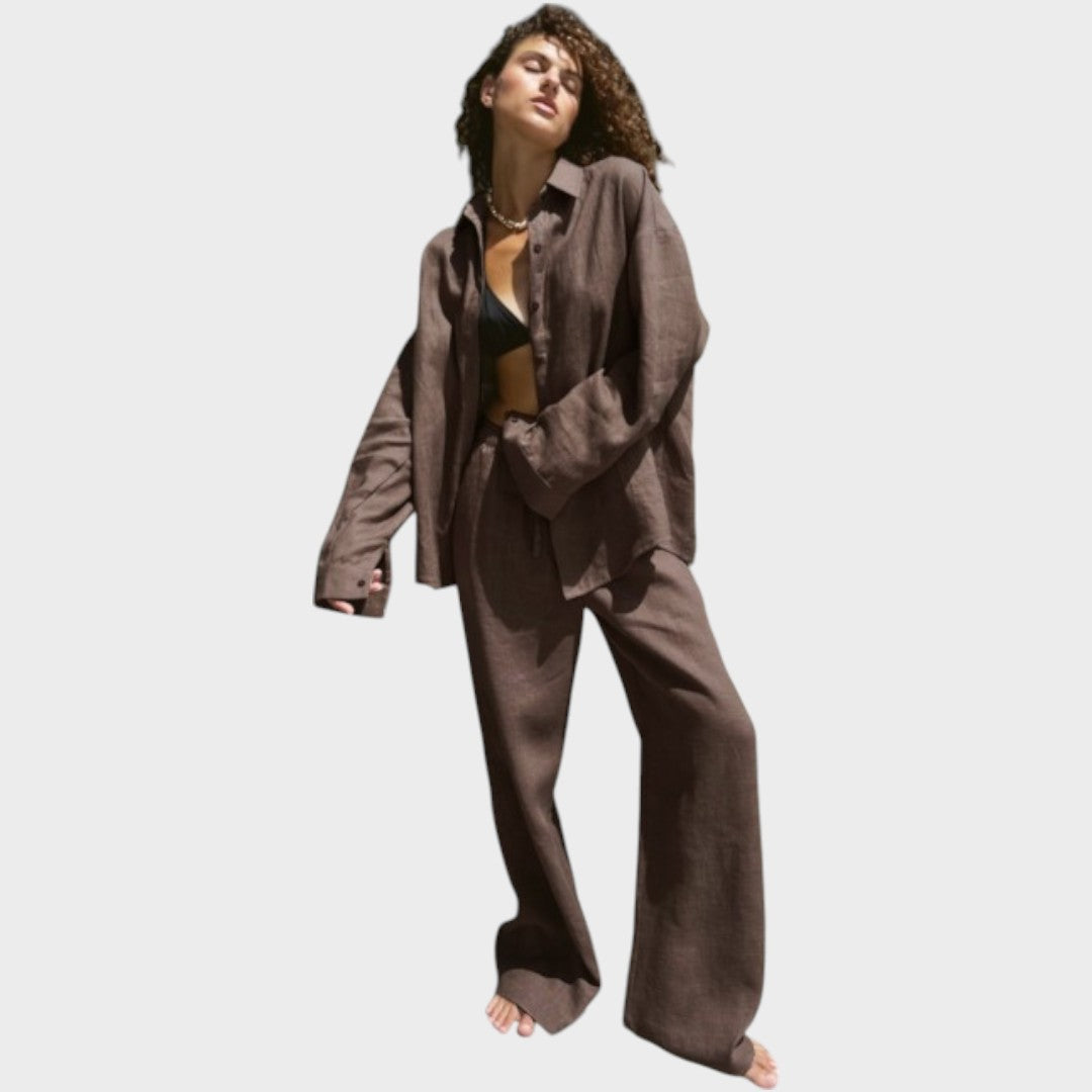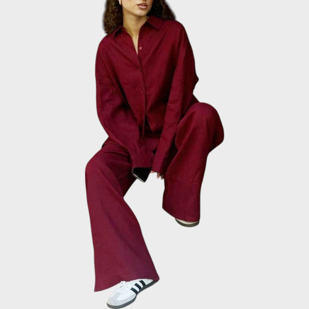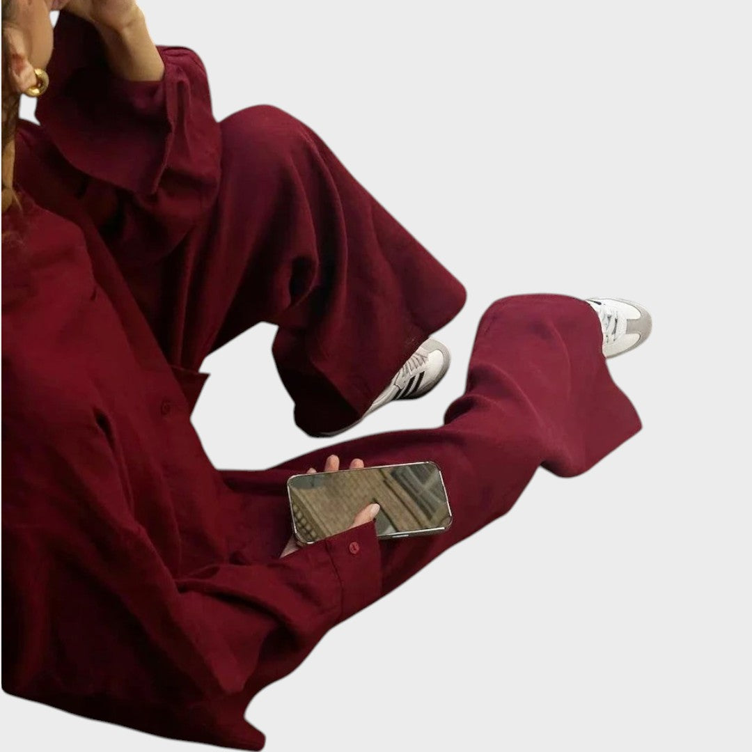 • Fluidez y Ajuste Cómodo - Forma oversize en la camisa y el pantalón, con cintura elástica que garantiza la libertad de movimiento.