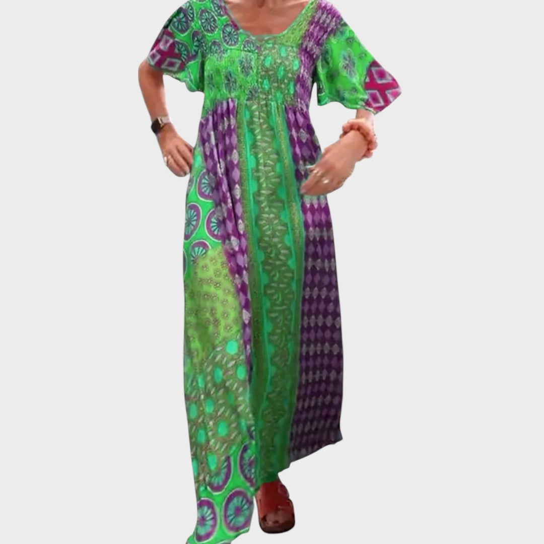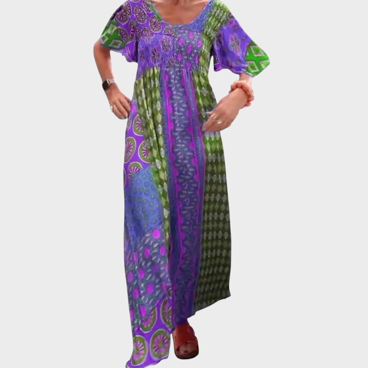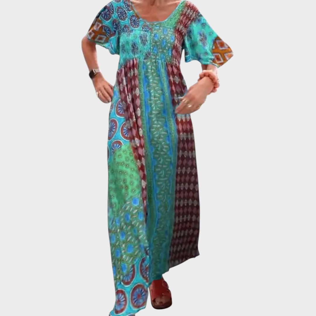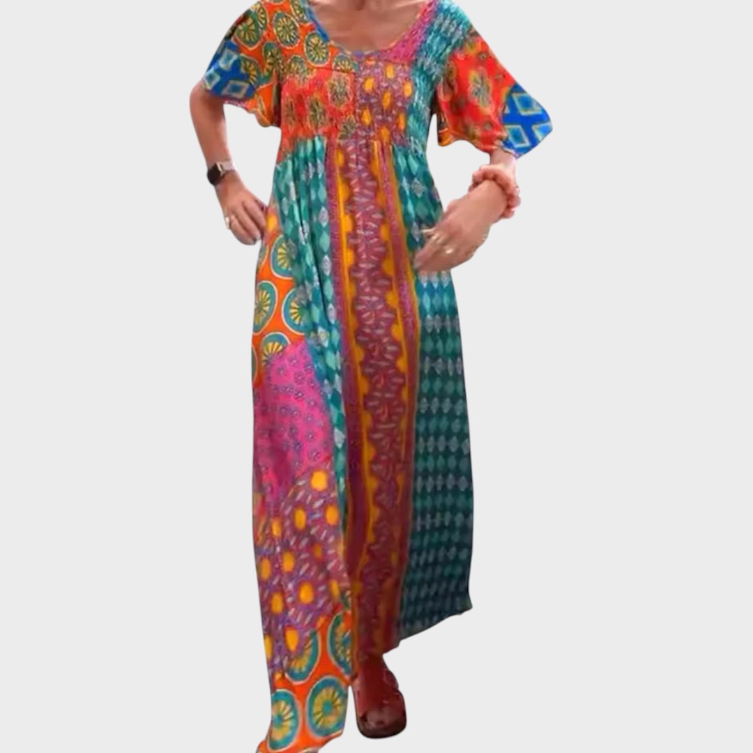 Confeccionado con una suave mezcla de algodón y una elegante silueta, ofrece ligereza con sofisticación. El escote redondo y el vibrante estampado crean una presencia llamativa, delicada pero inolvidable.